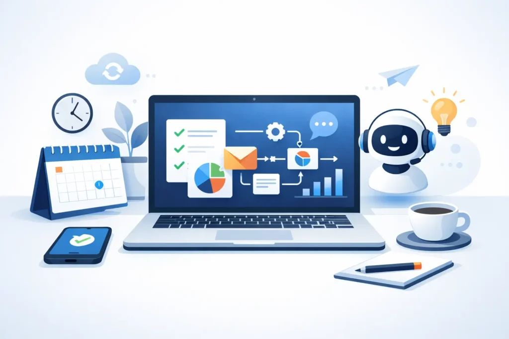 Every small task — replying to emails, scheduling meetings, updating task lists, copying data — steals minutes. Over a week, those minutes turn into hours. Over a year, they turn into burnout.